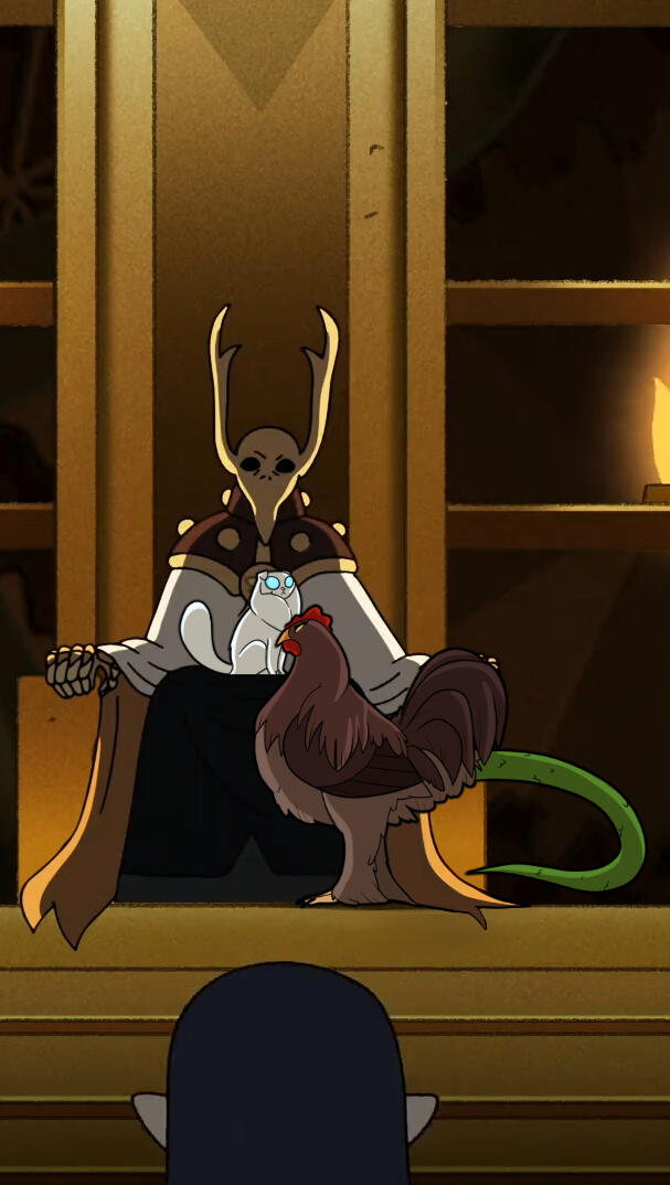 BIOGRAPHY:Glenys and Pudding are the two animal companions of the Emperor.The feline is a strange, almost unnerving looking house cat that ended up in the Demon realm via one of Belos' portal experiments.For many years she was lost inside the castle and unable to be found, leaving Belos to believe his beloved cat had died or run away, however she was recently found and returned to him.This odd cat has a tendency to disappear and reappear in places she should have no ability to get to or out of, and she almost never seems to blink. Glenys is pushing the limit of how old a house cat from the human realm seems able to get, though when questioned about this, Belos simply says that she is just very healthy and it shouldn't be worried about.She enjoys being picked up and cuddled, being a very friendly and gentle creature despite her strange appearance.Pudding, the Cockatrice, is a gigantic Palisman that is almost constantly with or near the Emperor.Belos is currently unwilling to recognize that Pudding is a Palisman due to his past experience with the wooden creatures and his own consumption of them.He dotes on Pudding almost endlessly, similarly to how he does Glenys, giving them both expensive beds and treats, and very often carrying Pudding like a baby when Pudding no longer wishes to walk.Pudding is EXTREMELY loyal to Belos and will violently lash out and attack anyone he thinks means to harm his 'witch'.Glenys' Blog Tag